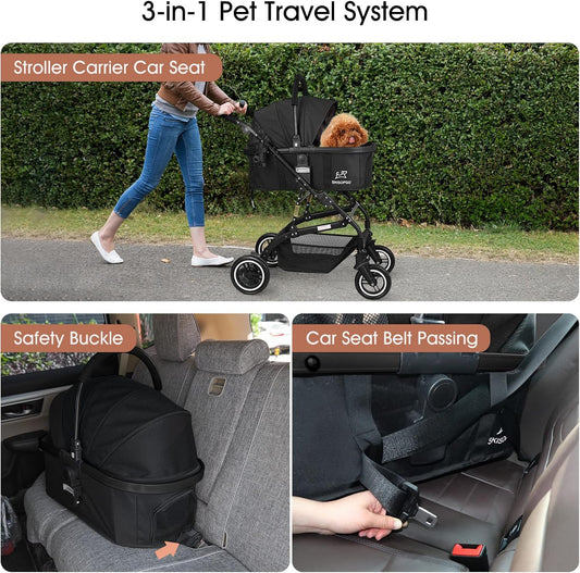 Luxe 3-in-1 Pet Travel System – Stroller, Carrier & Car Seat (Black)