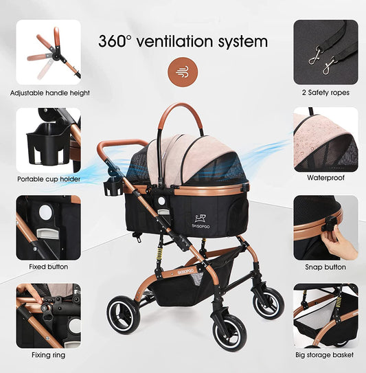 Luxe 3-in-1 Pet Travel System – Stroller, Carrier & Car Seat (Khaki)