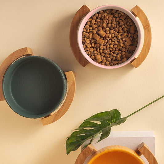 Ceramic Pet Bowls with Bamboo Stand