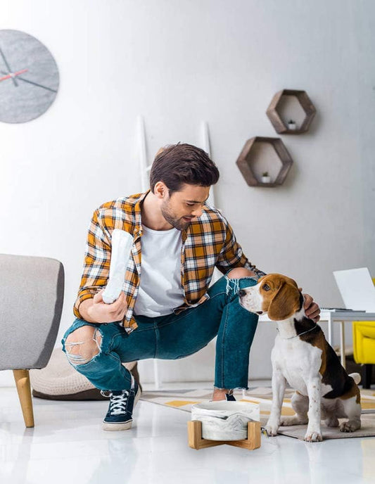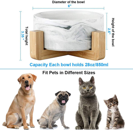 Elevated Marble Ceramic Pet Bowl – With Anti-Slip Bamboo Stand (28oz)